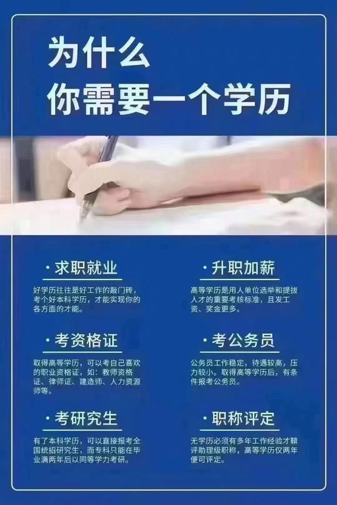 专科和本科(可申请学位),研究生学历,为高考失利和错过的社会在职人员和想要提升学历满足工作需要、升职加薪、出国留学、职称资格考试、积分落户到一二线城市的人群,提供的便利!